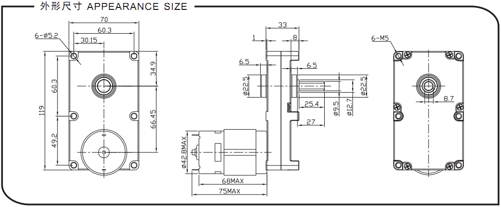 齒輪箱尺寸:70mmx119mmxH33mm