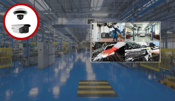 維修區(qū)采用全景特寫攝像機,360°高清全方位監(jiān)控,實現(xiàn)維修監(jiān)控全覆蓋。自帶特寫球機可靈活放大(4倍光學變倍),點擊查看維修畫面細節(jié);洗車區(qū)采用星光筒型攝像機,支持IP67防塵防水等級,支持星光級高清夜視和寬動態(tài)功能,通過海康威視NB系列NVR連接到監(jiān)控大屏在客戶休息實時展示維修畫面,客戶可實時查看維修洗車過程,全程操作透明化,提升服務體驗。