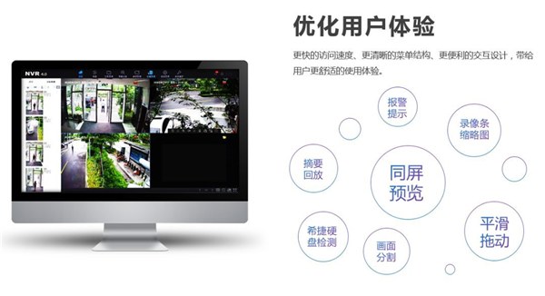 ??低曋悄XNVR采用的是4.0系統(tǒng)新界面,加入了大量智能應(yīng)用功能,如人車分類檢索、智能信息疊加、同屏預(yù)覽、摘要回放等功能。同屏預(yù)覽功能將發(fā)現(xiàn)的目標(biāo)顯示在屏幕左側(cè),不用去看每個視頻畫面就對警情一目了然。